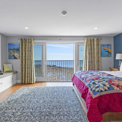 The property has 2 bedrooms and 2.5 bathrooms, both an oceanfront deck and a large entertaining deck perfect for watching boats come and go through Perkins Cove. In the primary suite, there is a jacuzzi tub and a large fireplace.